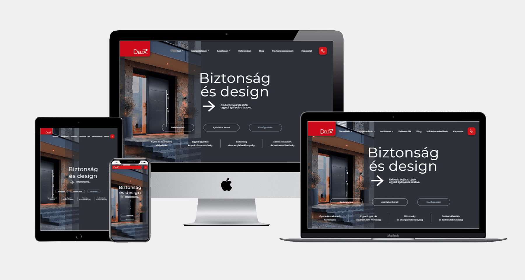 A Delta Ajtó projektben a cél egyértelmű volt: látványos szintlépés a márka online megjelenésében. Itt a hangsúly elsősorban a designon, a felhasználói élményen és a bizalomépítésen volt – egy olyan felülettel, ami első ránézésre is prémiumabb érzetet ad, és végig vezeti a látogatót az ajánlatkérésig.